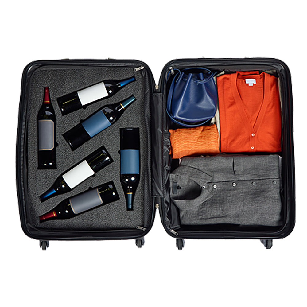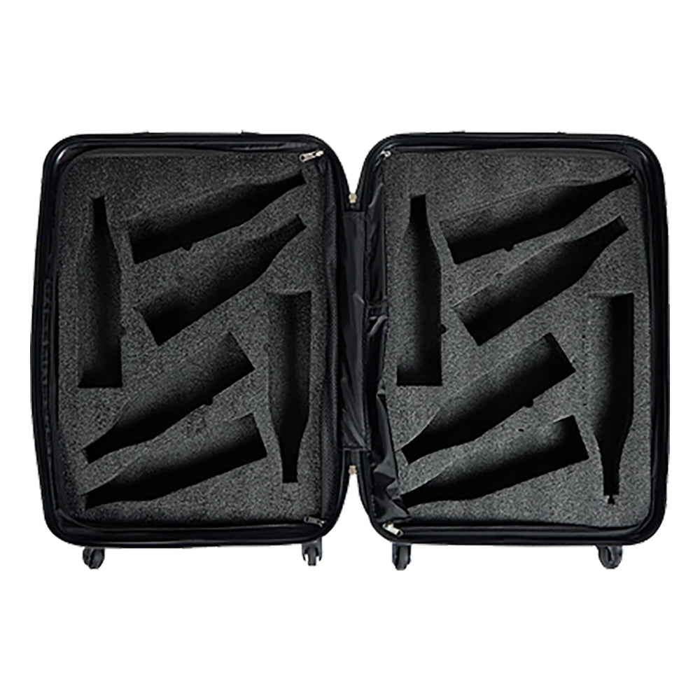 CAPACITY- Deep foam inserts included to accommodate up to 12 bottles (750 ml) of wine or spirits. Inserts are removeable to travel with fewer or no bottles along with ample space for clothing and other travel items.