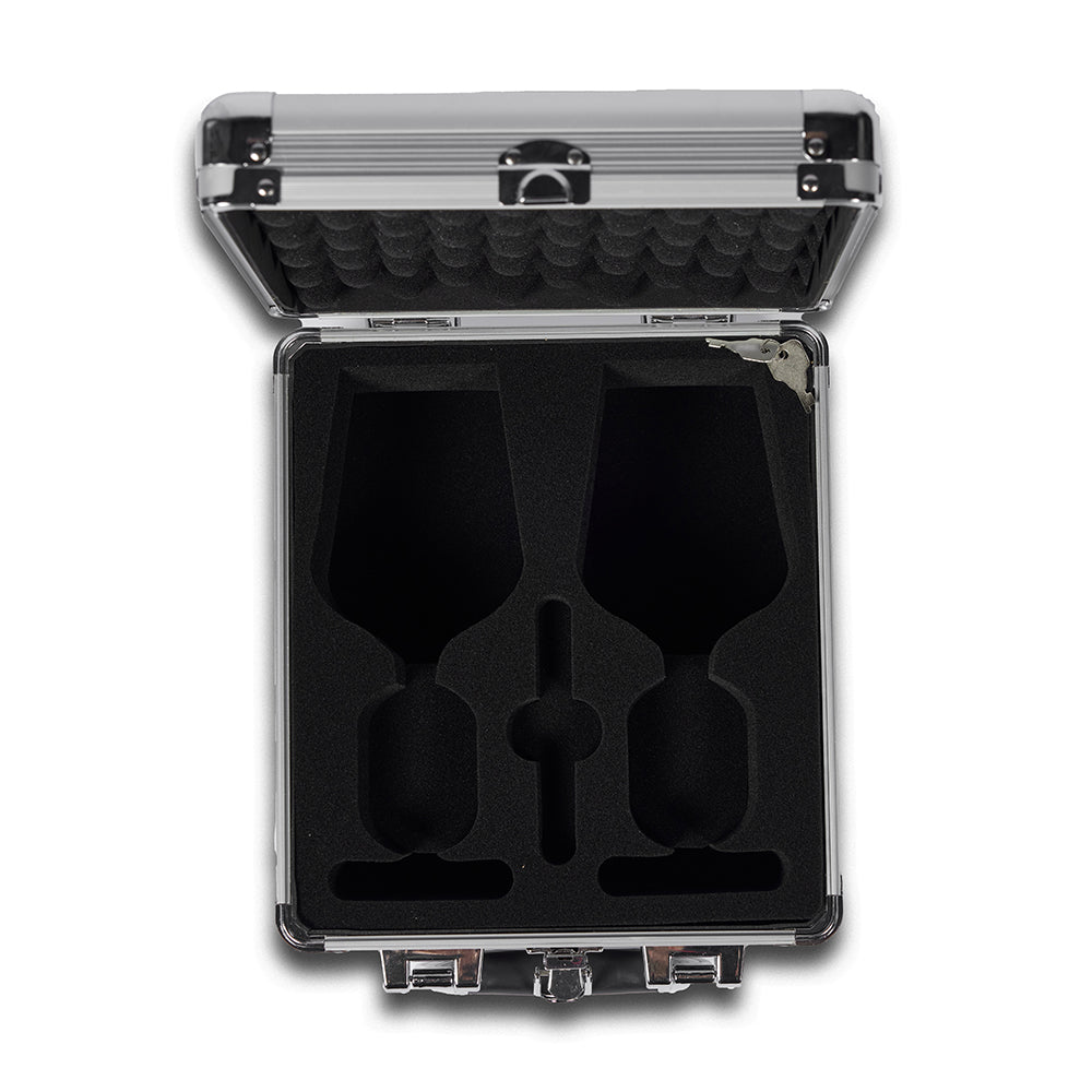 - FEATURES – Removable custom foam inserts allow for snug fit of two wine glasses that are enclosed in foam on bottom and top of case and prevent movement of wine glasses in transit. Foam inserts include indented space for wine opener (wine opener not included). Comes with lock and key for securing case while in storage or transit.