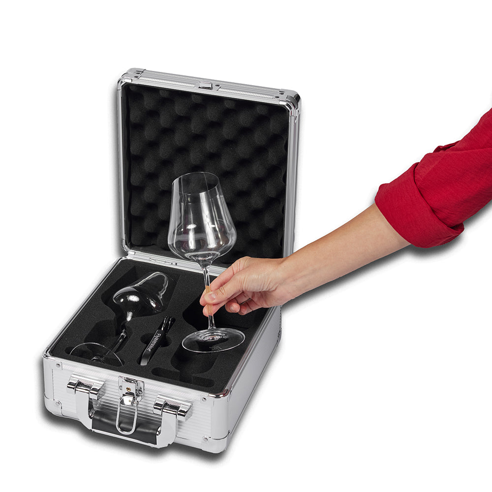 The VinGlass is a unique wine glass carrying case tailor made for wine lovers who like to drink their favorite wines in their favorite glasses while away from home. A hard outer shell and heavy duty foam inserts protect even the most fragile of glasses, making it easy to travel with wine glasses to restaurants, wine tastings, and other venues where the wine glasses being offered don’t measure up to fine wine enjoyment as it should be with your own high quality glasses.